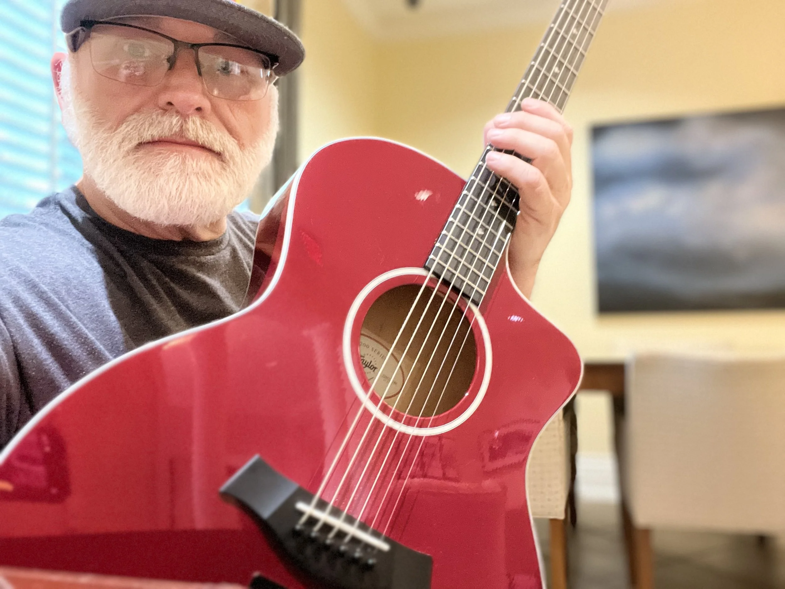 Thom says “In 2005 I was going through chemo-therapy. My friend and cowriter of “I Am A Woman” Mary Sue Englund knew that I wanted a Taylor guitar like hers, so she reached out to a bunch of friends of mine, including Pam Tillis. They all contributed to buy me my guitar. I picked it out on the Taylor website and when I saw the red color, I had to have it.”